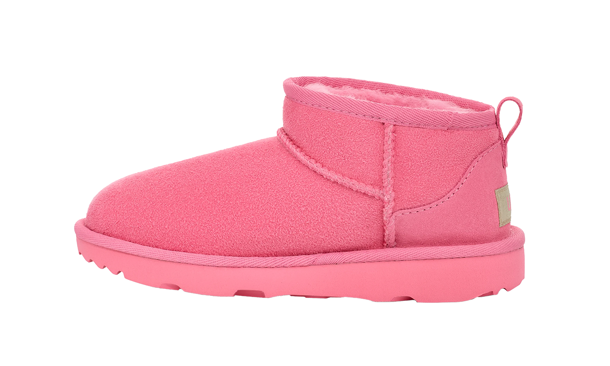 Make room in their closet for the must-have UGG Classic Ultra Mini Boot GS "Sachet Pink," our playful 'Pink Ultra!' This scaled-down boot features the iconic low-profile silhouette, making it effortless for kids to slip on and off. The beautiful pink suede is pre-treated to resist stains, while the soft sheepskin and UGGplush™ lining wrap little feet in superior warmth. With a lightweight, durable sole built for all-day play, it's the perfect cozy statement piece.