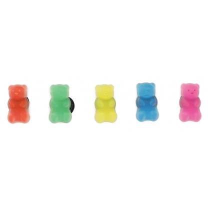 This Pack of 5 Jibbitz contains 5 Colours of Candy Bears which are Red, Green, Blue, Orange and Yellow