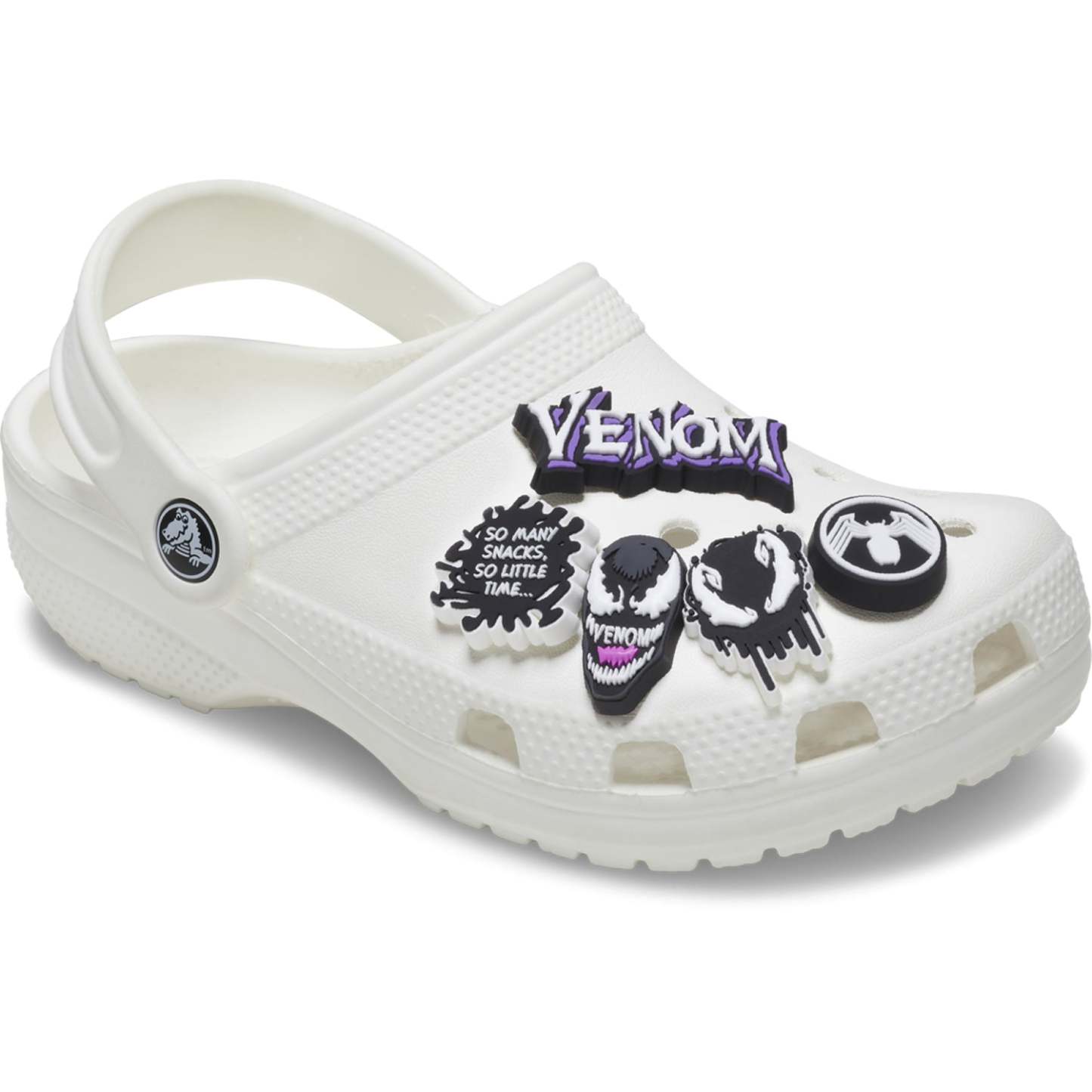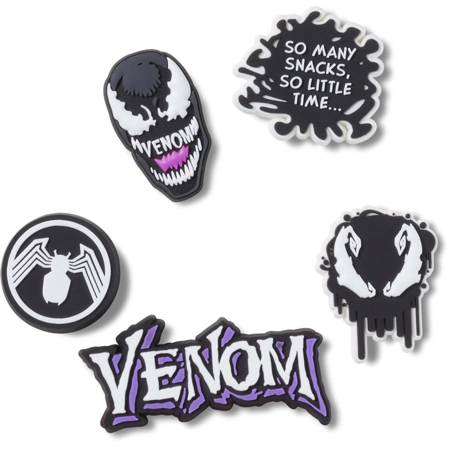 These are Spider Man Venom shoe charms! Show off some personality with Spider Man Venom Jibbitz. They’re the perfect accessory to your favourite Crothtcs.This is not a toy. Ages 3 and up.