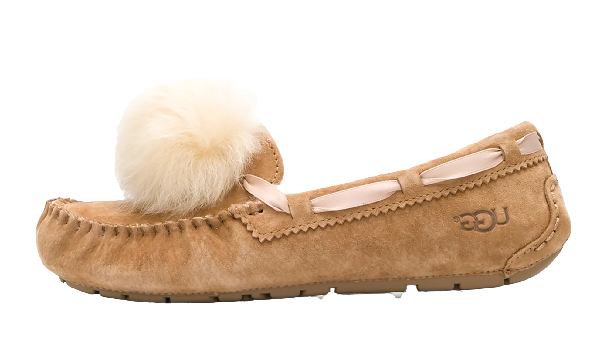 Inject some cozy fun into your day with the delightful UGG Dakota Pom Pom Slip-On WMNS "Brown" slipper. This classic women's moccasin features a rich suede upper and a playfully plush pom-pom accent detail. Inside, the signature UGGpure™ wool lining provides luxurious warmth and comfort for your feet. With its durable rubber outsole, this slip-on is equally perfect for cozy mornings at home or quick, stylish outings!