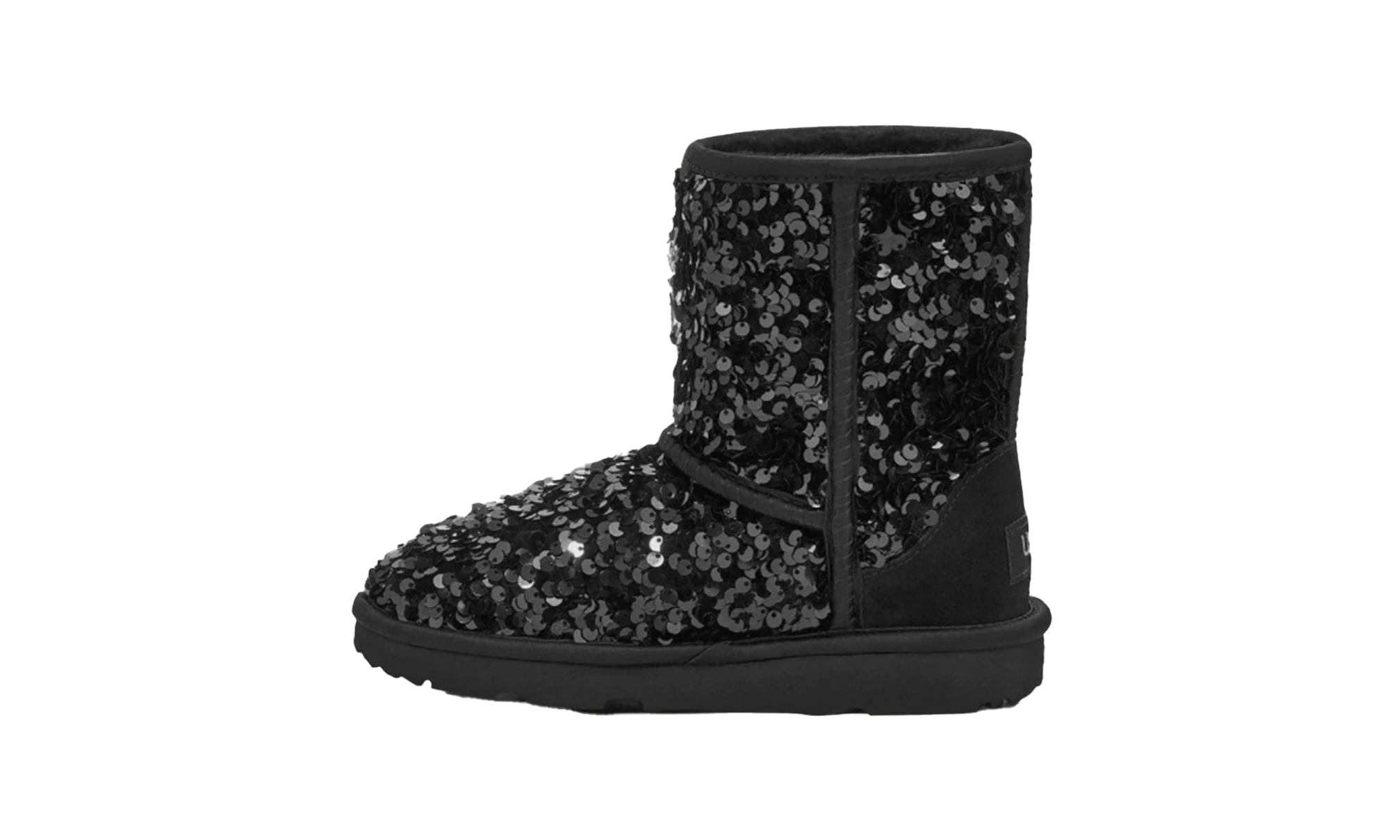 Let your Pre-Schooler sparkle and shine with the Classic Short Chunky Sequin Boot PS 'Black'. This fun, festive boot takes the iconic Classic silhouette and covers it in large, dazzling black sequins for a glamorous look. The comfortable wool blend lining delivers legendary UGG warmth, while the durable outsole is built for cushioned play. Give your kiddo a boot that’s soft inside and wonderfully show-stopping outside!