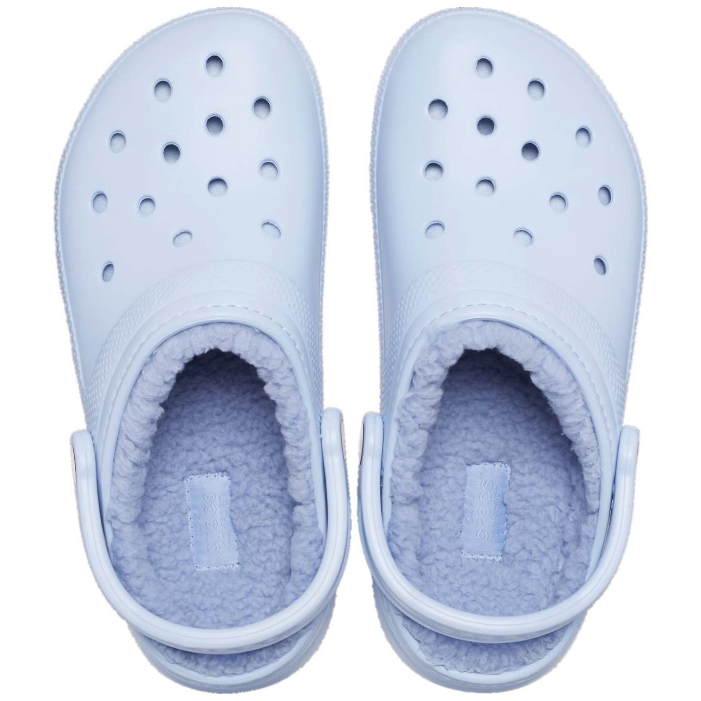 Warm, fluffy fleece synthetic lining for added warmth. Croslite material midsole for lightweight cushioning. Heel strap for a secure fit. Non-marking Croslite material outsole. Dual Crothtcs comfort. Accepts Jibbitz.
