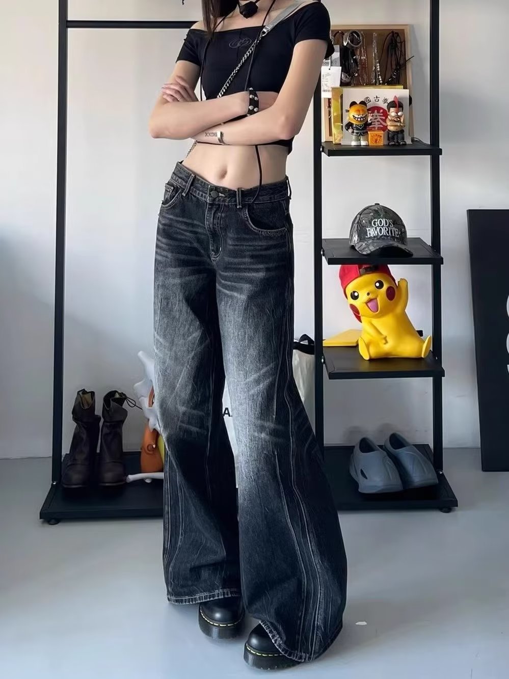 Product information: Color: Black Elasticity: inelastic Main fabric composition: Cotton Waist type: high waist Size: XS,S,M,L,XL Pants type: Straight type