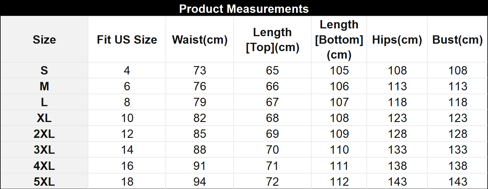 Product measurement will be slightly larger than the body measurements (to allow for comfort and ease of wear)*This data was obtained from manually measuring the product, it may be off by 1-2 CM